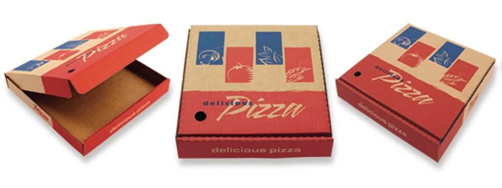 This pizza box comes in single fold, strong, thick virgin Kraft B-flute brown board; it ticks all the boxes for quality, strength and price.